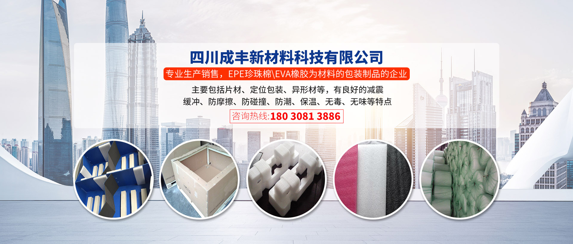 四川成豐新材料科技有限公司位于四川省德陽市旌陽區(qū)圖門江路30號,公司成立以來一直專業(yè)、誠信為客戶服務(wù)。現(xiàn)在是一家專業(yè)生產(chǎn)銷售,EPE珍珠棉\EVA橡膠為材料的包裝制品的企業(yè),包括片材、定位包裝、異形...